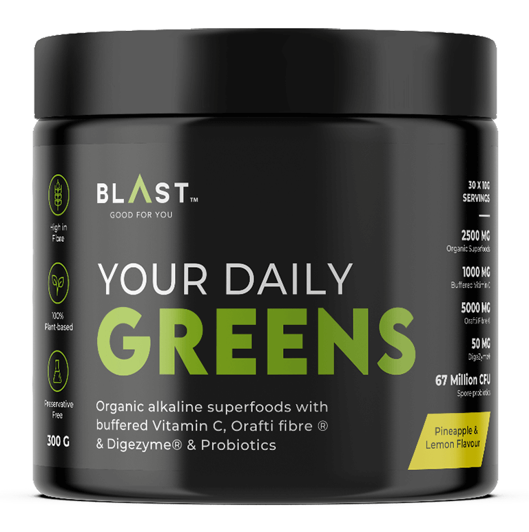 BLAST™ Daily Greens features a diverse range of premium organic alkaline superfoods designed to oxygenate the body and enhance overall well-being. Packed with immune-boosting nutrients, this blend aids in defending against viruses and bacteria. The high content of wheatgrass and spirulina, known for their abundant chlorophyll and antioxidants, provides anti-inflammatory benefits, shielding against diseases and promoting long-term wellness.