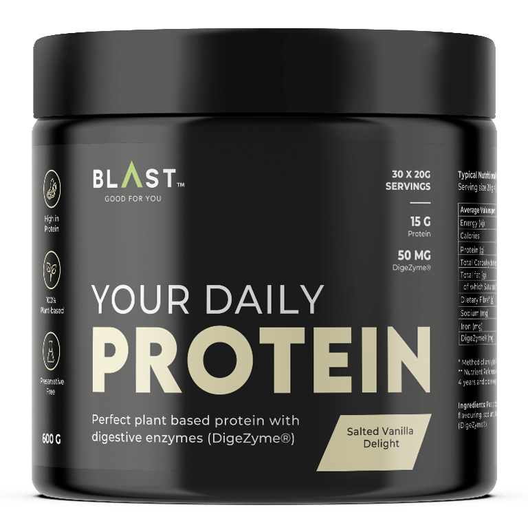 BLAST™ Daily Protein combines the power of pea and rice proteins, delivering a balanced amino acid profile comparable to that of animal proteins. Amino acids are the building blocks of protein, crucial for repairing and building muscle tissue, which is vital after your workouts. With Digezyme™, a blend of digestive enzymes included in our formula, BLAST™ Daily Protein ensures that you absorb all the nutrients effectively, without the bloating or digestive discomfort often associated with other protein powders.