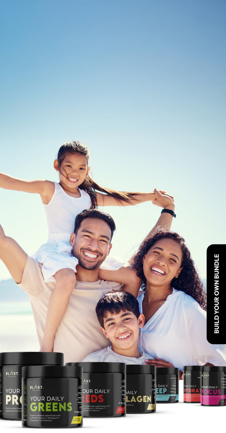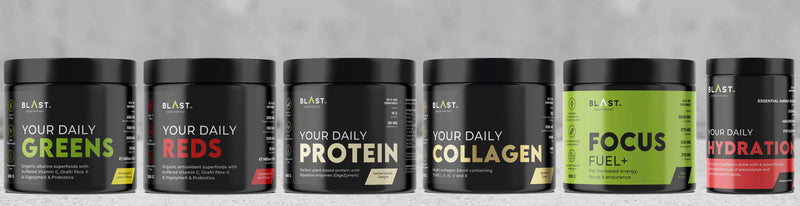 BLAST™ Daily Collagen enhances skin elasticity and hydration while protecting against oxidative damage through vital nutrients and antioxidants, supporting a radiant complexion. It also aids in joint flexibility and bone strength, with greens providing complementary nutrients like vitamin K and calcium for optimal bone health. Collagen’s amino acids support gut integrity, while greens’ prebiotics and enzymes enhance digestion and gut health.